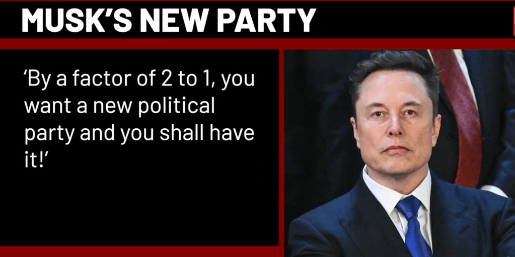Elon Musk, a former ally of US President Donald Trump, announced on Saturday that he has lunched a new political party aimed at what he calls America’s “one-party system and challenging those he accuses of hypocrisy. Economists estimate the bill will add 3.4 trillion to the national deficit over the next decade. Musk had previously conducted a poll…Read the rest of this story here:
