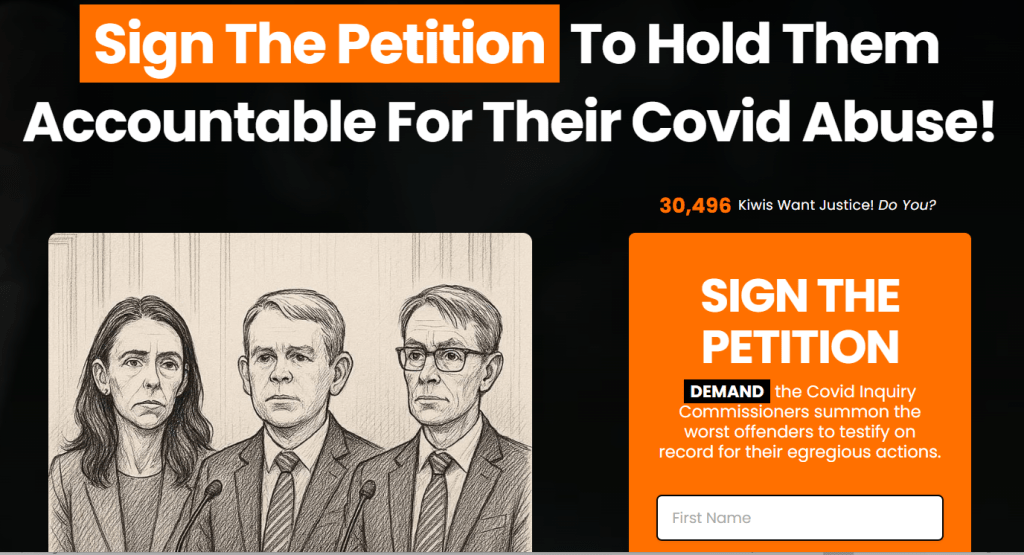 From: Reality Check Radio, NZ Did you know? The COVID-19 Royal Commission has the legal power to summon witnesses to testify under oath. It’s time those responsible for the covid mandates face the music. And with enough pressure, it could happen! DEMAND the Covid Inquiry Commissioners summon the worst offenders to testify on record for their egregious actions.When could it all happen? The Commission has said it will call key decision makers and advisors to testify in public hearings mid to late August 2025. 30,496 Kiwis Want Justice! Do You? Sign The Petition To Hold Them Accountable For Their Covid Abuse. Who were the worst offenders? Learn more and sign the petition here:
