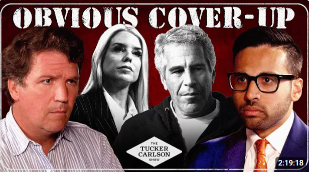 Why is Pam Bondi’s Justice Department covering up Jeffrey Epstein’s crimes and murder? Saagar Enjeti has a theory. Last but not least, Tucker Carlson just interviewed Saagar Enjeti and he has at theory, and it’s an obvious cover-up Watch the interview in Carlson’s network here or on Youtube here:
