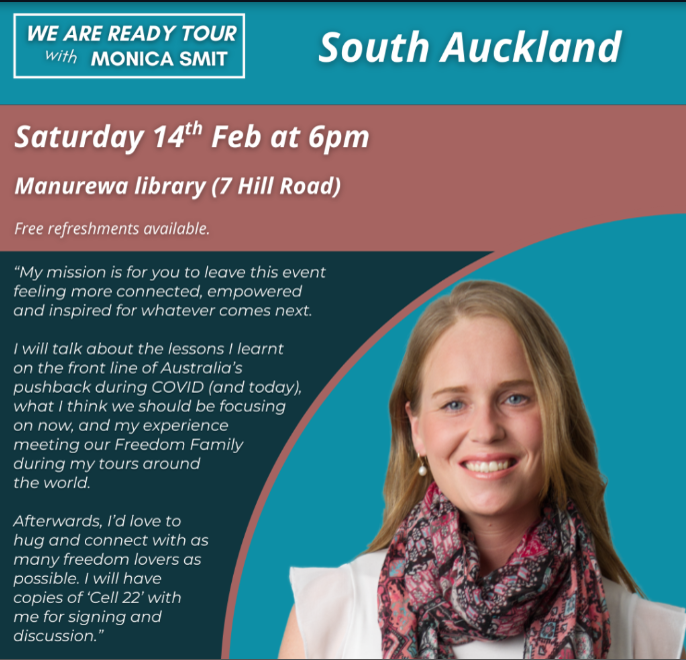 She urged everyone to ensure they got out in nature, did what they love to do, whether it is art, outdoors, music, or sport and to keep positively creating to help keep the spirit of life out of the reach of those who seek full control.“Let’s also pour the coals on creativity for our country and the world! She gave an example of what would be great to see in the field of real health, including healing centres where real healing can be obtained by all who want to rejuvenate their health through an integrative and natural healing approach that achieves true restoration of mind, body and spirit – where organic food and pure water without harmful chemicals is also provided.” I can see wonderful healing centres in this country, out of the cities, surrounded by nature and where full health is restored. NZ could easily be the organic food capital of the world — pure water without toxic additives as well.”