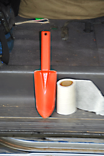 This system of catholes, (or poop and carry), saves hauling a portalet, driving around with wastewater and dumping sewage. Of course we can’t have middle America pooping at every field they see, or can we? It certainly doesn’t work in National Parks, and I obviously advocate this as a back up to public toilets, when nothing else is on the horizon. But for earth’s sake, leave the motorhome at the junkyard!