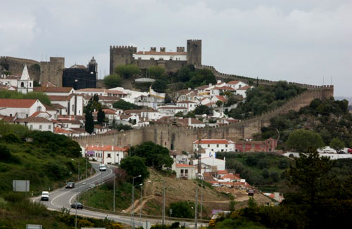 I got off the train with my backpack, and starting walking towards the walled Moorish castle village of *Obidos. As I crossed a bridge, a shorter man, a bit plump if I remember, with a full black beard and Portuguese fishing cap leaned against the railing, puffing on a long pipe. “Ah,” I thought, “The epitome of the Portugese villager”.