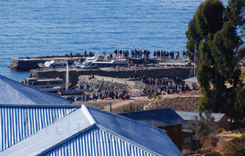 Large Crowds disembark daily from Puno for Ocosuyo, Amantani