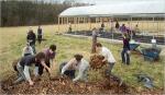 IMAGE: The Crop Mob gathers mulch and finishes the greenhouse – just two of the day’s tasks at Okfuskee Farm in Silk Hope, N.C.