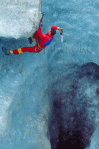 I got some shots of this ice climber practicing on the glacier just near the entrance of the Mont Blanc tunnel in Chamonix, France. It’s a great place to practice with good top-rope sites.