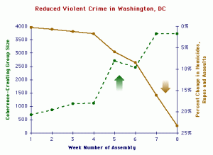 In fact, the findings later showed that the rate of violent crime–which included assaults, murders, and rapes–decreased by 23 percent during the June 7 to July 30 experimental period. The odds of this result occurring by chance are less than 2 in 1 billion. Rigorous statistical analyses ruled out an extensive list of alternative explanations, according to John Hagelin, (more…)