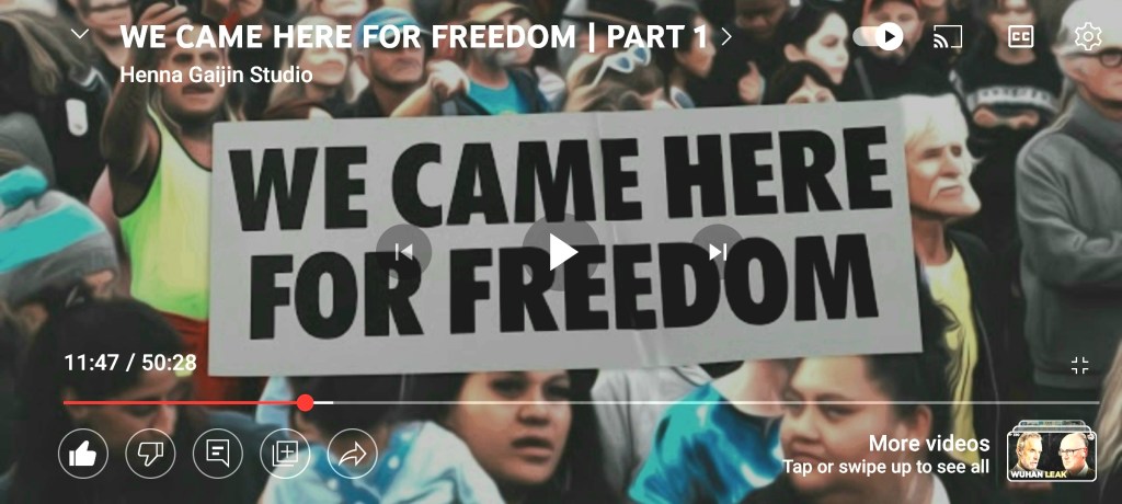 “In 2022-22 the New Zealand government enacted emergency laws, mandates, and a medical passport system that caused thousands of New Zealanders to lose jobs, businesses, homes and health. When those people protested, they were ignored b their own government and media and demonized by their representatives as “a river of filth”. This is their story in their own words.” So reads the opening frame in a new documentary, We Came Here for Freedom, Part 1 released three weeks ago by Henna Gaijin Studio, in association with Chantelle Baker’s Operation People ..