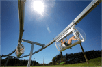 Shweeb’s bike-powered 200 meter monorail, pitched as an adrenalin-fueled sky cycling adventure in Rotorua, New Zealand, may be headed for bigger tracks. Google, who found out about it a few years ago, has been so enamored with the system, in which users are suspended form the track in transparent pods to cycle around the landscape a t speeds of up to 45 km per hour, they’ve invested 1.05 million in developing the technology. I t could be the future for alternative transportation, so Google claims. What one would do about traffic jams is something to ponder, but that’s a minor speed-bump compared to running fossil fuels till we’re extinct.