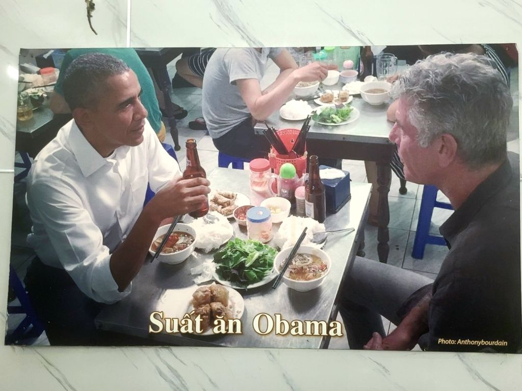 My family and I happened to go to a well-known “Bun Cha” street food restaurant in Hanoi recently, and found a poster of Obama and Anthony Bourdain sitting at one of the tables.