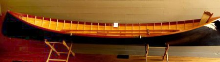 Dan uses a traditional wooden design with a the use of fiberglass. Each boat is first ribbed and planked and then coated with a fiberglass/epoxy resin. This increases strength and preserves the wooden look, and makes the boat easier to maintain. The Adirondack Guideboat is 16ft in length and weighs in at 75lbs. So make your portages short. The boats are made of cherry, birds eye maple, and white pine woods.