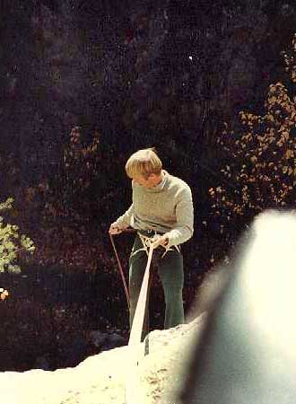 Richards rappelling in his twenties, Newbury, NH